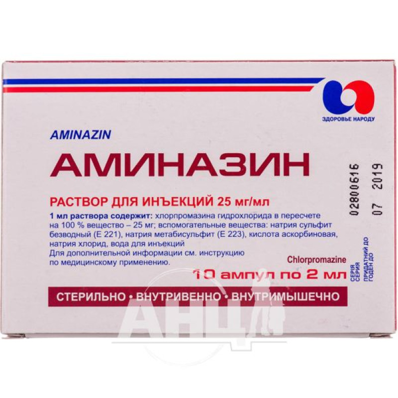 Аміназин розчин для ін'єкцій 2,5% ампула 2 мл №10