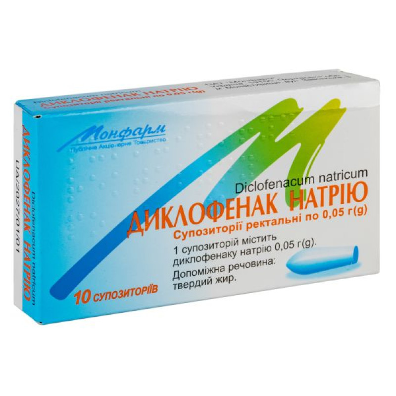 Диклофенак натрію супозиторії ректальні 0,05 г стрип №10