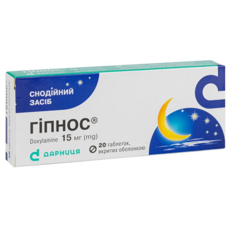 Hypnos® is a hypnotic drug of the ethanolamine class from the group of histamine H1-receptor blockers, which has a sedative and M-cholinoblocking effect. It reduces the time to fall asleep, increases the duration and quality of sleep.