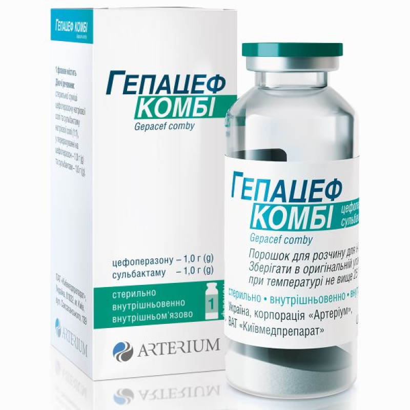 Інструкція Гепацеф Комбі порошок для розчину для ін'єкцій 1 г + 1 г флакон №1