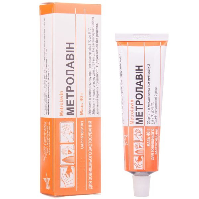 Зазначений комплекс фармакологічних властивостей забезпечує лікувальну ефективність мазі Метролавін при гнійних ранах і опіках на І (гнійно-некротичної) фазі ранового процесу, яка супроводжується вираженим інфекційним і запальним процесом і болем.