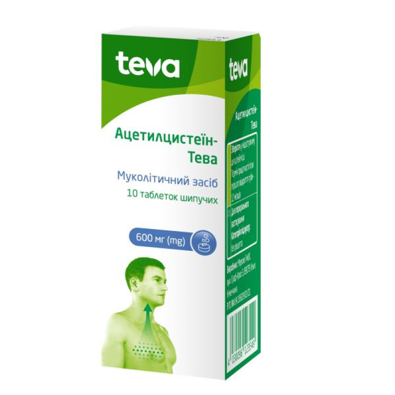 1 таблетка шипучая содержит: ацетилцистеина 600 мг;
