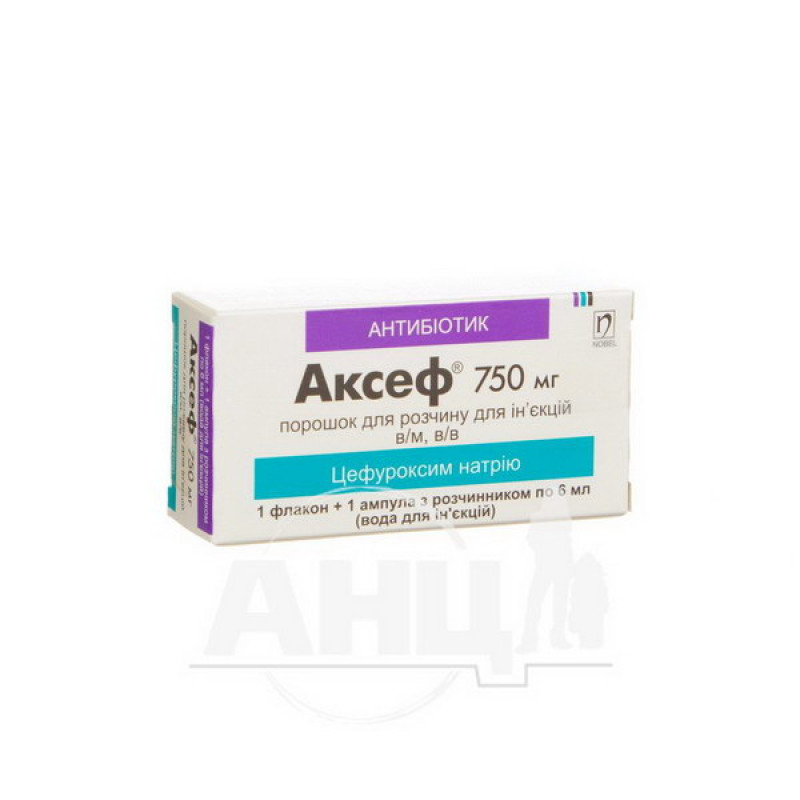 Аксеф порошок для раствора для инъекций 750 мг флакон с растворителем в ампулх 6 мл №1