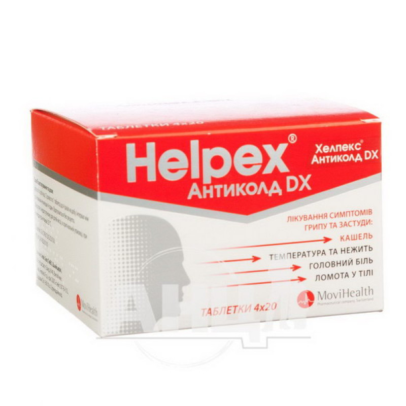Хелпекс Антиколд DX таблетки по 20 упаковок по 4 таблетки в групповой пачке № 80
