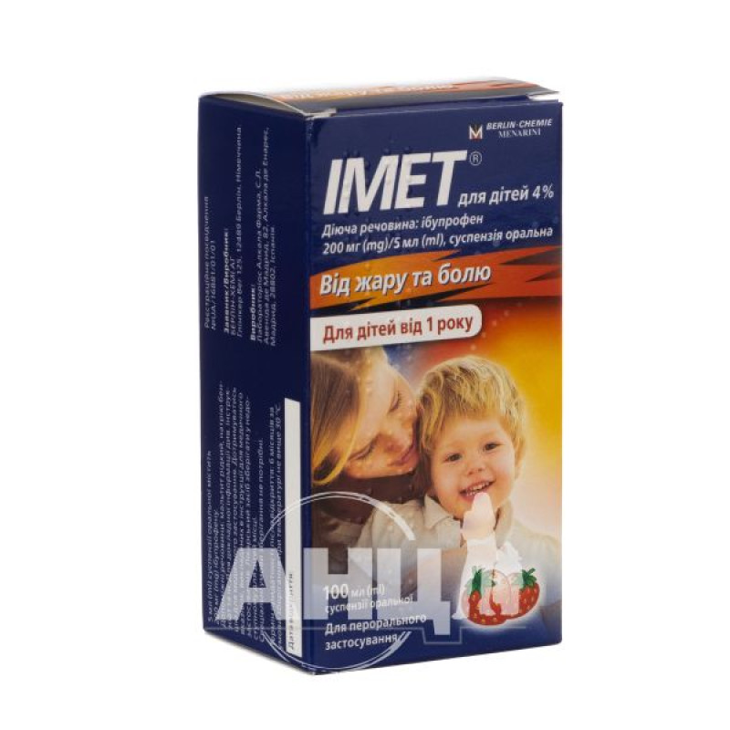 Суспензия оральная Имет для детей 4% показана для краткосрочного симптоматического лечения лихорадки и болевого синдрома легкой и средней степени.