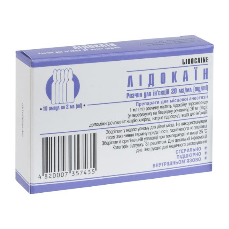 Лидокаин раствор для инъекций 20 мг/мл ампула 2 мл №10