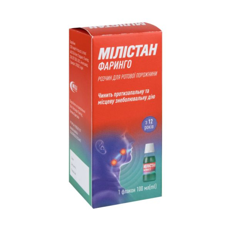 Милистан Фаринго раствор для ротовой полости 1,5 мг/мл флакон 120 мл