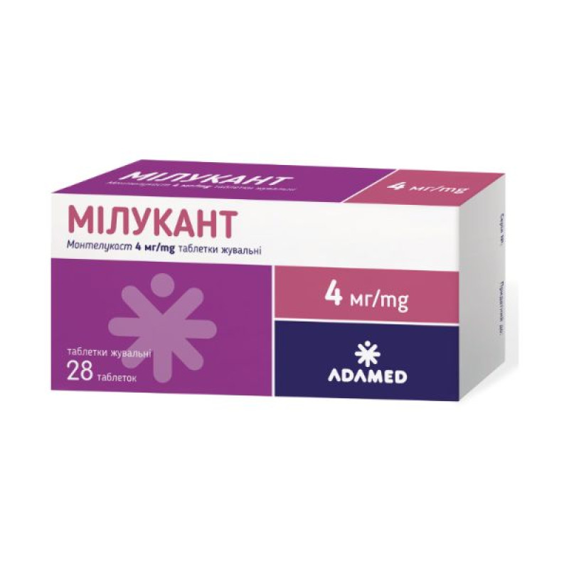 Для лечения БА доза для детей в возрасте от 2 до 5 лет составляет 1 таблетку жевательную (4 мг) в сутки, вечером. Милукант следует принимать за 1 ч до еды или через 2 ч после еды. Нет необходимости в коррекции дозы для этой возрастной группы. Препарат Милукант в лекарственный форме таблеток жевательных (4 мг) не рекомендуется для детей в возрасте до 2 лет.