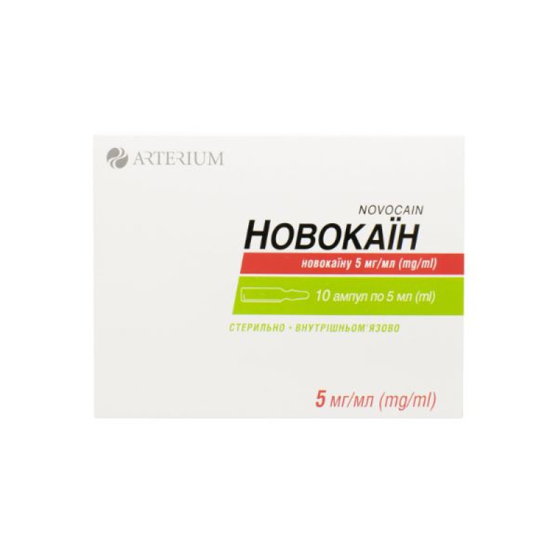 1 мл новокаина (прокаина гидрохлорид) 5 мг; вспомогательные вещества: вода для инъекций.Противопоказания