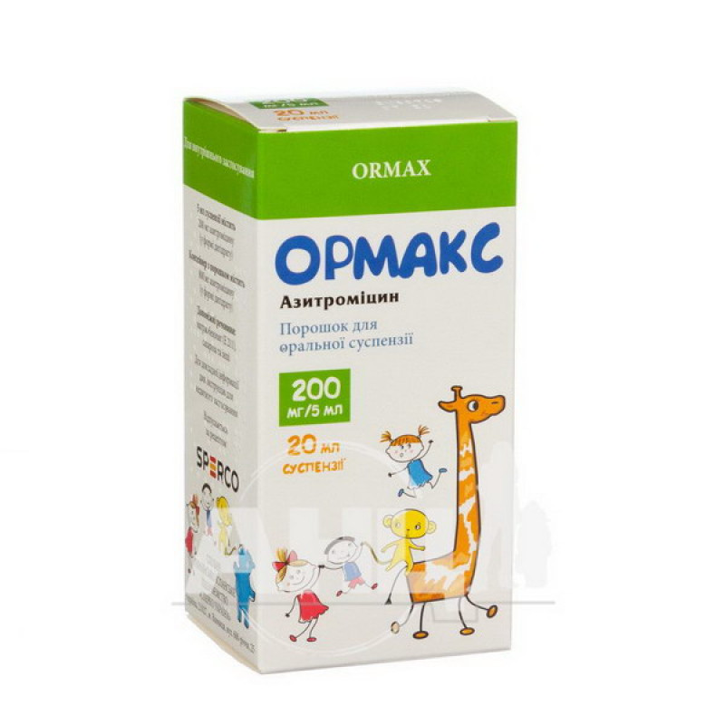 Порошок для оральной суспензии Ормакс показан для лечения инфекций, вызванных микроорганизмами, чувствительными к азитромицину: