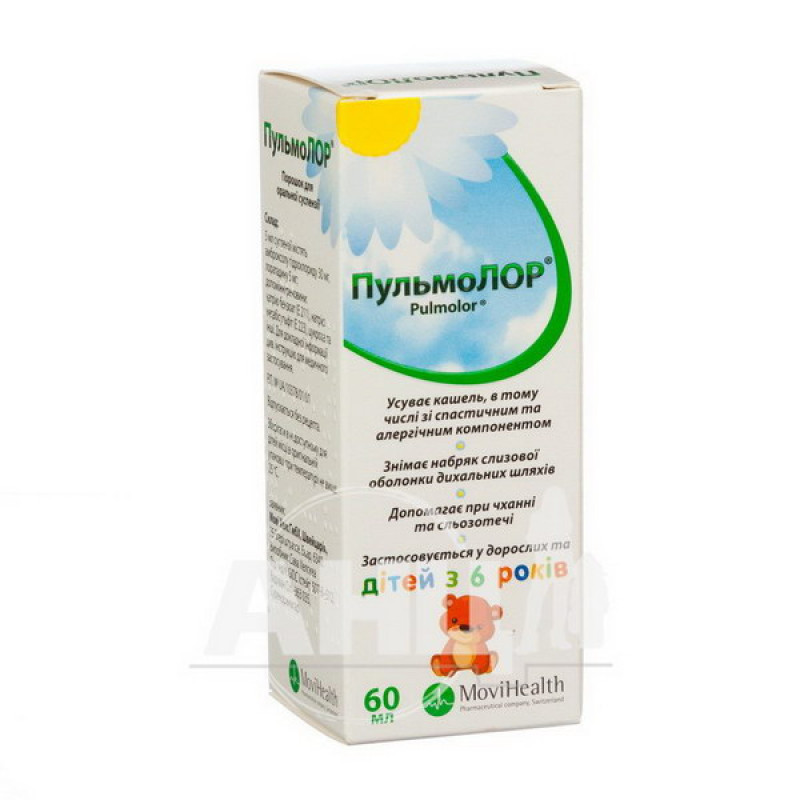 Пульмолор оказывает выраженное отхаркивающее действие, смягчает и успокаивает сухой кашель, облегчает дыхание, нормализует секрецию бронхиальной слизи, улучшает отхождение мокроты, уменьшает воспаление дыхательных путей. оказывает противоэкссудативное действие, уменьшает спазм гладких мышц бронхов и отек тканей, в том числе слизистых оболочек носа, горла, гайморовых пазух и дыхательных путей, снижает проницаемость капилляров, уменьшает заложенность носа, слезотечение, чихание, зуд неба и носа, гиперемию глаз.