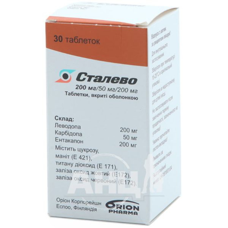 Другие противопаркинсонические препараты. информации о взаимодействии противопаркинсонических препаратов и сталево нет. высокие дозы энтакапона могут влиять на всасывание карбидопы. однако при рекомендованном дозировании взаимодействия с карбидопой не выявлено (200 мг энтакапона до 10 раз в сутки). во время изучения взаимодействия между энтакапоном и селегилином у пациентов с болезнью паркинсона, которые принимали леводопу/ингибитор ддк, не отмечено ни одного взаимодействия. при применении сталево суточная доза селигинина не должна превышать 10 мг.